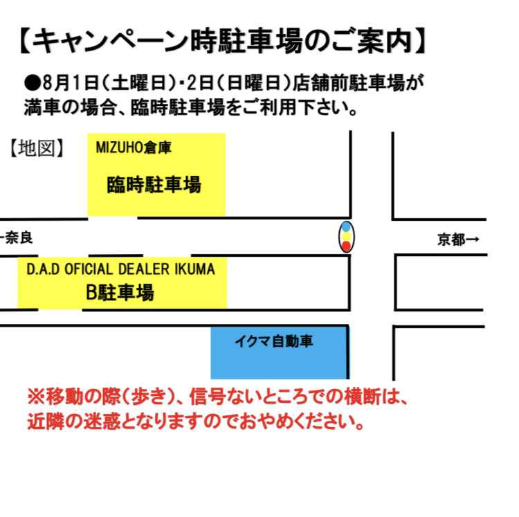 サマーキャンペーン 2020/07/30 詳細案内 サマーキャンペーン 8月1日.2日変更のご案内 コロナウィルス感染拡大を鑑み、キャンペーンの一部を変更致しました。 それに伴い、キャンペーン及び駐車場の利用が変更になります。 また、キャンペーン当日人数が多くなる場合、入場制限をさせて頂く場合もございます。 ご来店の際は、マスクの着用もよろしくお願い致します。