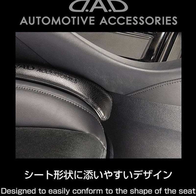 ・デザインは、前方部がシートと沿うように開発した曲面形状を採用。 装着時の違和感が出にくいよう工夫されており、一番目立つ上面には職人が一つ一つ丁寧に型押しを施した、主張しすぎない上質な高級感あるD.A.Dロゴ型押しデザインが採用されています。